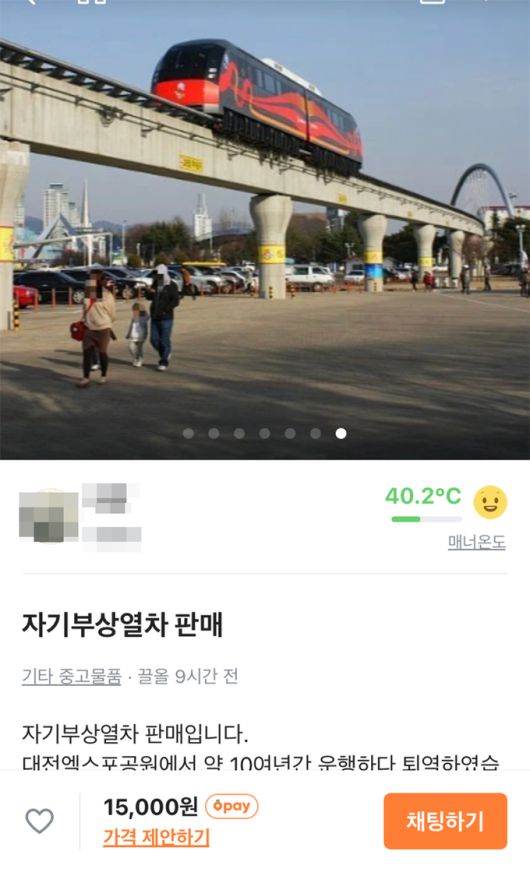 당근마켓 매물로 나온 ‘대전 자기부상열차’