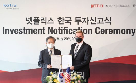 코트라(KOTRA)는 산업통상자원부와 서울 포시즌스 호텔에서 넷플릭스 자회사의 경영진과 만나 투자신고식을 개최했다고 20일 밝혔다.