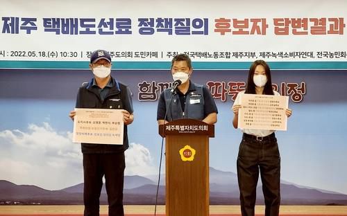전국택배노동조합 제주지부와 제주녹색소비자연대, 전국농민회총연맹 제주도연맹 등은 20일 보도자료를 통해 지방선거에 출마한 후보자들에게 택배 도선료 문제에 대해 정책 질의한 결과를 다시 발표했다.