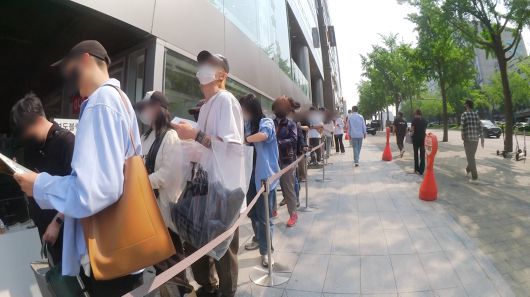 20일 오전 서울 신사동 유니클로 매장 앞에서 사람들이 입장을 기다리고 있다. '유니클로 앤드 마르니' 출시 현장 분위기는 오는 26일 유튜브 채널 ‘라인업 LineUp’에서 공개할 예정이다. /스튜디오광화문 이예은 PD |