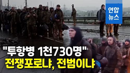 (서울=연합뉴스) 우크라이나 남부 도시 마리우폴의 아조우스탈 제철소에서 항전하다 러시아 측에 투항한 우크라이나 군인 수가 1천700명을 넘어섰습니다.