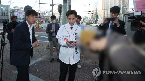 (광주=연합뉴스) 천정인 기자 = 국민의힘 이준석 대표가 광주에서 6·1 지방선거 국민의힘 후보자들의 현수막을 훼손한 당사자를 만나 해명을 요구했다.