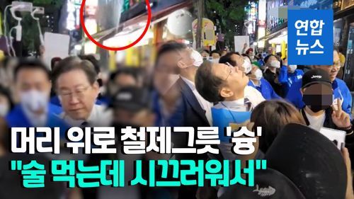 (서울=연합뉴스) 인천 계양을 국회의원 보궐선거에 출마한 더불어민주당 이재명 후보가 유세 중 철제그릇이 날아오는 봉변을 당했습니다.