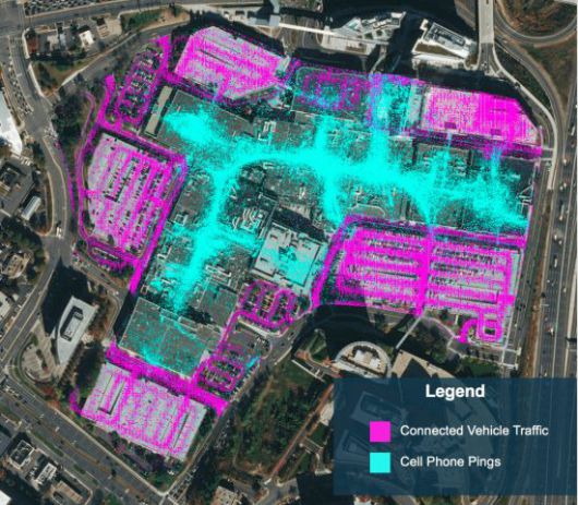 KT SAT과 파트너쉽을 맺은 오비탈인사이트 플랫폼을 활용해 버지니아주 타이슨스 코너 센터의 부동산을 분석한 모습/