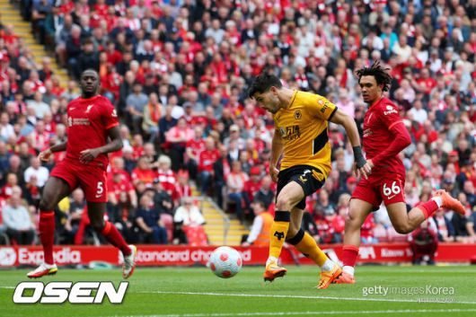 리버풀은 23일 오전 0시(한국시간) 영국 리버풀의 안필드에서 열린 '2021-2022 시즌 프리미어리그' 38라운드 최종전 울버햄튼 원더러스와 경기를 치르고 있다. 전반전을 마친 현재 리버풀과 울버햄튼은 1-1로 팽팽한 승부를 펼치고 있다.