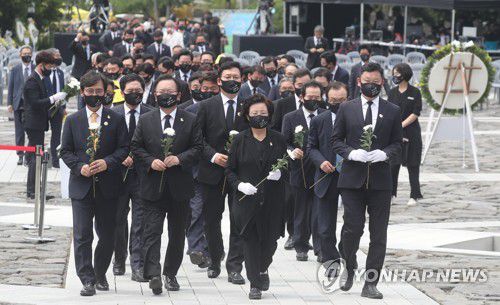야당 시절이던 2017∼2019년에는 당 지도부가 추도식에 불참했다. 이후 2020년 11주기 추도식에 주호영 원내대표가, 2021년 12주기 추도식에 김기현 원내대표가 각각 참석한 바 있다.
