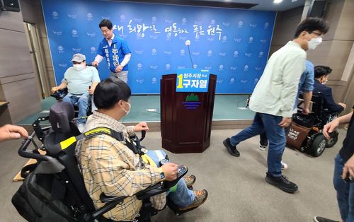 구 후보는 이날 원주시청 브리핑룸에서 원주장애인자립생활센터, 원주시장애인부모연대 등 장애인 단체와 사회적 약자 등이 참석한 가운데 장애인·사회적 약자 공약을 발표했다.