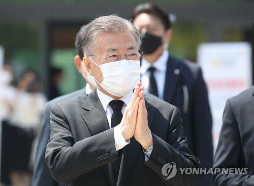 문 전 대통령은 검은색 양복에 검은 넥타이 차림이었다.