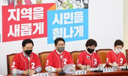 김기현 위원장은 오전 중앙선대위에서 "대선 패장 3인방을 전면에 내세워 이번 지방선거를 치르겠다는 민주당을 보면 아연실색하지 않을 수 없다"며 "새 정부가 출범도 하지 못하게 발목을 잡고 몽니를 부리더니 일을 시작하지도 않은 정부를 상대로 '정권 견제론'이라니 야당을 심판하자는 말이 나올 수밖에 없다"고 지적했다.