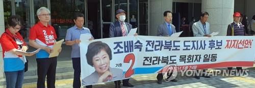 목회자 대표들은 이날 전북도의회 앞에서 기자회견을 열고 "현재 전북도는 30여 년간 일당 독주 정치체제를 유지해 251명의 지방단체장과 의원 중 국민의힘 소속은 단 한 명도 없다"라며 "우리는 정의와 공정 측면에서 조 후보를 지지한다"고 밝혔다.