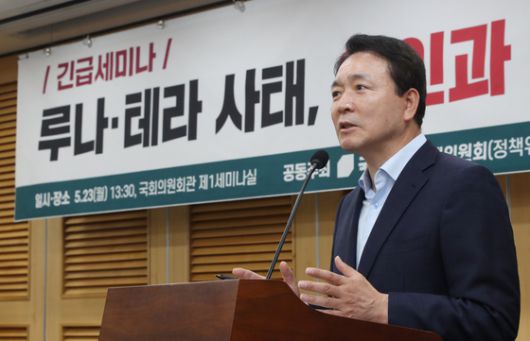성일종 국민의힘 정책위원장은 24일 오후 국회의원회관에서 열린 '디지털자산기본법 제정과 코인 마켓 투자자 보호 대책 긴급 점검' 당정 간담회를 마치고 기자들과 만나 "지금 상황이 (루나, 테라로 인한 피해가) 심각한데 법이 만들어지려면 시간이 걸리기 때문에 우선 시행령으로 예탁금 보호, 질서 교란행위 등을 컨트롤 할 수 있는지 요청했다"고 밝혔다.