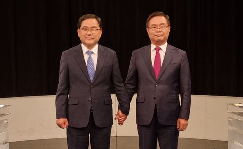 홍 후보는 "포인트는 전임 시장이 어쨌든 간에 재임 때 빨리 문제를 파악해서 그 사업이 정상화되도록 해야 한다는 부분을 지적한 것"이라며 공방을 이어갔다.
