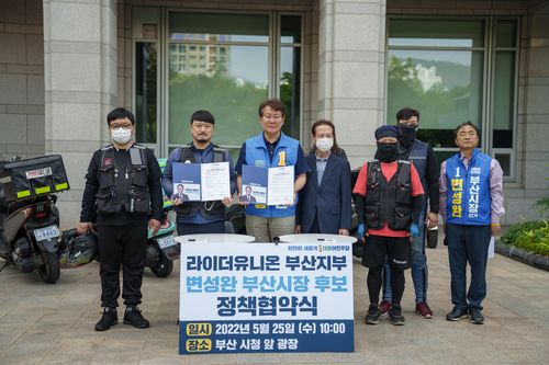변성완 부산시장 후보, 라이더 유니온과 정책협약 |