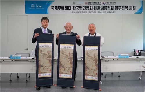 (서울=연합뉴스) 장보인 기자 = 대한씨름협회는 유네스코 국제무예센터, 한국택견협회와 종목 저변 확대를 위한 업무협약(MOU)을 했다고 25일 밝혔다.
