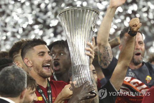 (서울=연합뉴스) 안홍석 기자 = 조제 모리뉴 감독이 지휘하는 이탈리아 프로축구 세리에A AS로마가 유럽축구연맹(UEFA) 주관 클럽 대항전의 3부 리그 격 대회인 유로파 콘퍼런스리그(UECL)의 원년 대회 우승컵을 들어 올렸다.