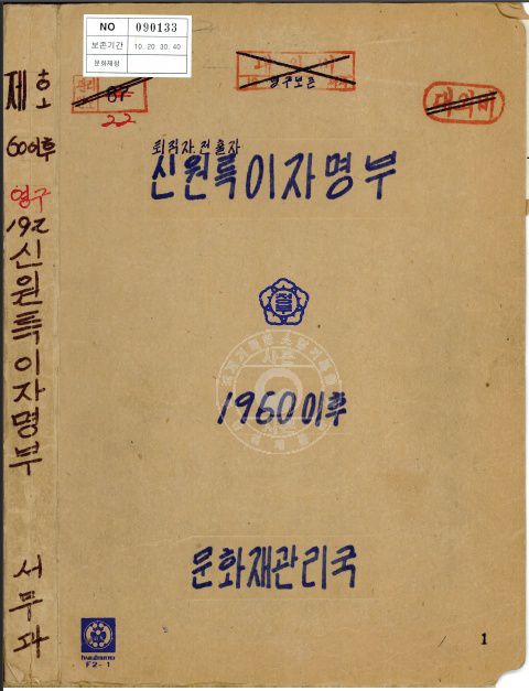한편 진실화해위는 이번 조사 과정에서 국가기록원에 영구 보존 중이던 1960∼1980년대 '신원특이자명부'를 수집하는 성과를 거뒀다. 당시 문화재관리국(현 문화재청)에서 관리했던 자료다.