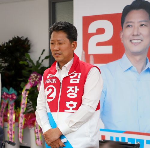 (구미=연합뉴스) 홍창진 기자 = 6·1 전국동시지방선거 경북 구미시장에 출마한 국민의힘 김장호 후보는 '청소년·장애인·어르신을 위한 100원 버스' 공약을 26일 발표했다.