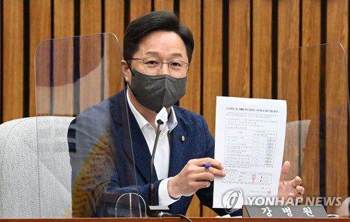 4월 27일 오후 국회에서 열린 국무총리후보자(한덕수)에 관한 인사청문특별위원회 전체회의에서 더불어민주당 강병원 간사가 인사청문준비단에서 배포한 보도 설명자료를 들고 발언하고 있다. [국회사진기자단] |