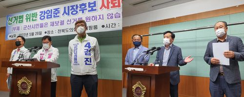 나 후보는 26일 전북도의회에서 기자회견을 열고 "현직 시장인 강임준 후보가 지난 3월 종교인 7명과 점심을 먹으면서 조만간 사표를 내고 재선에 출마한다고 지지를 호소했다"며 "당시 식대는 현금으로 계산했다는 의혹이 있다"고 주장했다.