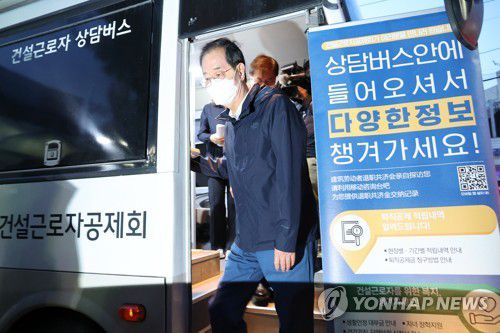 새벽 인력시장 상담버스 둘러보는 한덕수 총리 |