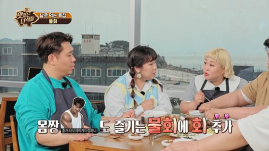 특히 물회가 다이어트 음식임을 강조하던 뚱5는 홍윤화가 "김종국 오빠가 물회에 회를 추가해서 먹지 않나"라고 운을 떼자 "운동을 4시간씩 하면 뭘 먹어도 살이 안 찔 것 같다", "우리는 4시간씩 먹고 있는데"라며 부러워해 웃음을 안겼다.