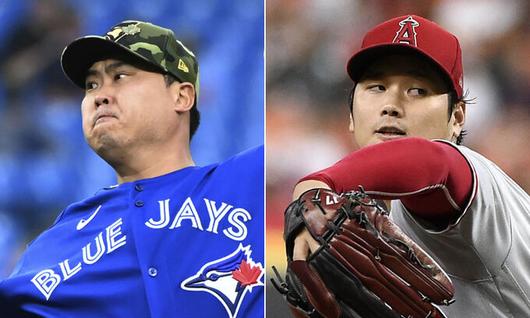 토론토 블루제이스의 류현진(왼쪽)과 로스앤젤레스 에인절스의 오타니 쇼헤이. AP연합뉴스 |