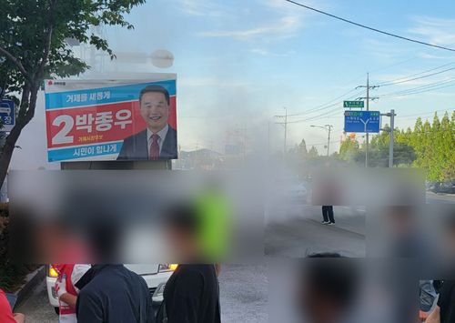 거제시장 국힘 후보 유세차에 소화기 분사한 30대 경찰 조사 |