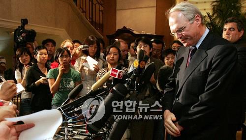 이곳에서 매일 밤 힐의 간이 기자회견이 열렸다. 한·미·중·일·러시아 등 각국 기자 수십 명에 매일 '점령'당했던 호텔 로비의 활기는 이젠 기억하기 허망한 추억이 됐다.