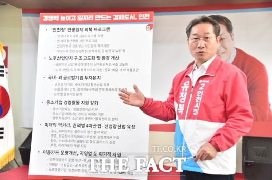 [더팩트ㅣ인천=지우현기자] 국민의힘 유정복 인천시장 후보 선대위가 더불어민주당 박남춘 후보가 시장으로 있던 민선7기 시절 많은 기업들이 인천을 떠나 경제 성장률이 떨어졌다고 주장했다.