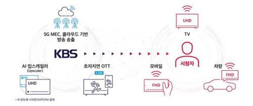 지난해 9월 '차세대 방송 송출 서비스를 위한 상호 협약'을 체결한 3사는 지난달 KBS 본관에서 MEC 기술을 활용한 지상파 방송 송출 시스템 가상화·인공지능(AI)반도체 '사피온'을 적용한 AI 업스케일러로 방송 영상을 고품질로 변환하는 1차 시연을 마쳤다.