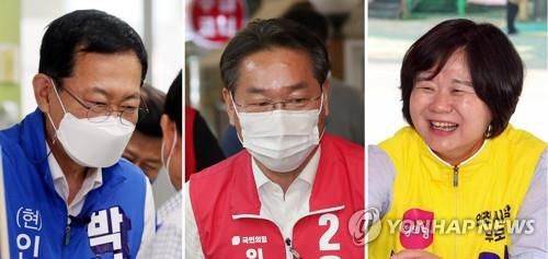 지지 호소하는 박남춘·유정복·이정미 후보 |