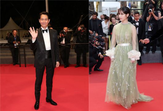 구찌의 글로벌 앰버서더 이정재는 지난 5월 19일 칸 영화제 메인 상영관인 뤼미에르 대극장에서 열린 '헌트' 스크리닝 참석을 위한 레드카펫 행사에서 구찌의 블랙 모아레 실크 이브닝 재킷과 화이트 이브닝 셔츠, 그리고 블랙팬츠와 블랙 실크 보타이를 매치하여 시선을 사로잡는 룩을 완성했다.