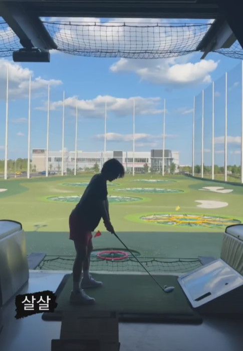 또한 "살살","빡"이라는 글과 함께 스크린 골프 연습장에서 즐거운 시간을 보내고 있는 모습도 담았다.