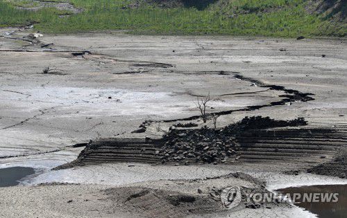 길어진 봄 가뭄에 바짝 마른 저수지 |
