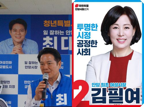 안양시장 최대호 민주당 후보와 김필여 국민의힘 후보 |