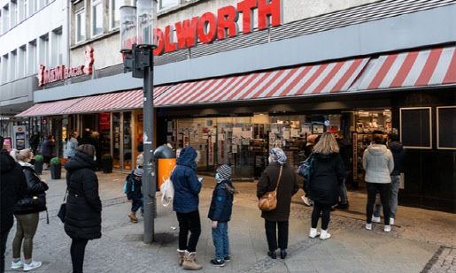 독일 수도 베를린의 한 상점 앞에 물건을 사러 온 주민들이 줄지어 서 있다. (사진=신화/연합뉴스) |