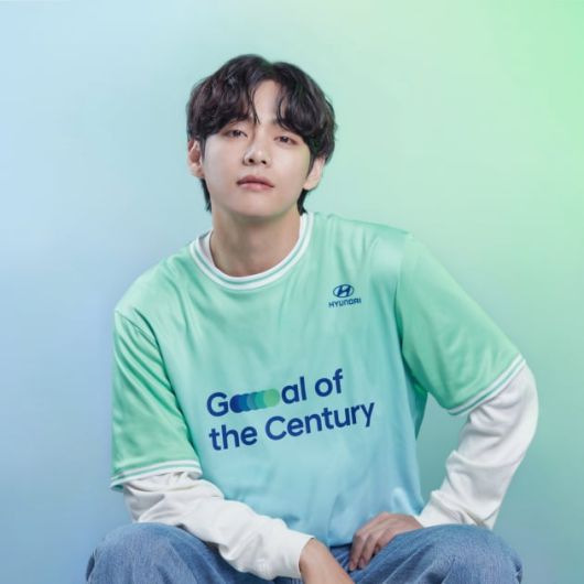 사진에서 뷔는 그린색이 그라이데이션된 반팔티셔츠에 청바지의 스포티한 패션에 귀를 드러낸 짧고 세련된 단정한 헤어스타일로 눈길을 끌었다.