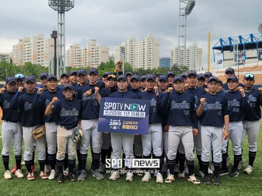 경남고와 청담고 선수들이 메이저리그 경기를 부담 없이 즐길 기회를 반겼다. 스포티비(SPOTV)는 30일 목동야구장에서 열린 '제76회 황금사자기 전국고교야구대회 겸 주말리그 왕중왕전' 결승전에 나선 경남고, 청담고 선수단 모두에게 '스포티비 나우(SPOTV NOW) 프리미엄 1년 이용권'을 전달했다.