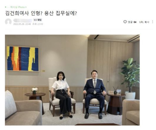 이씨가 해킹을 당한 것으로 추정하는 시점은 김 여사의 대통령실 사진이 카페에 게시된 지 약 1시간쯤 뒤다. 김 여사의 대통령 집무실 사진은 같은 날 오후 10시 48분에 게시됐다.