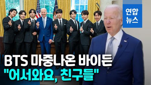 백악관 밖에서 BTS를 기다리던 바이든 대통령은 "백악관에 온 걸 환영한다"며 두 팔을 들고 "어서 와요, 친구들"(come on up here guys)이라고 반겼습니다.