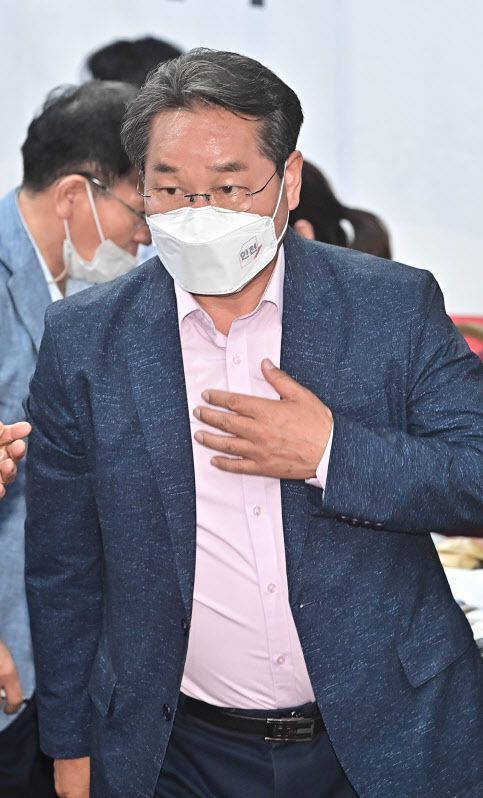 6·1 지방선거가 시행된 1일 오후 국민의힘 유정복 인천시장 후보가 인천시 미추홀구 자신의 선거사무소에 들어서고 있다. 유 후보는 방송사 출구조사 결과 경쟁자인 더불어민주당 박남춘 후보보다 득표율에서 우세한 것으로 예측됐다.(사진=인천사진공동취재단) |
