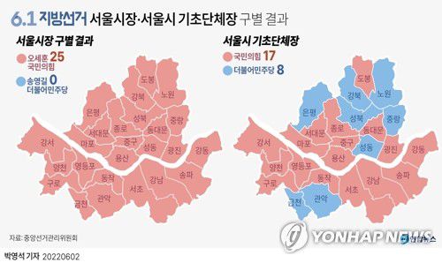 [그래픽] 6.1 지방선거 서울시장·서울시 기초단체장 구별 결과 |