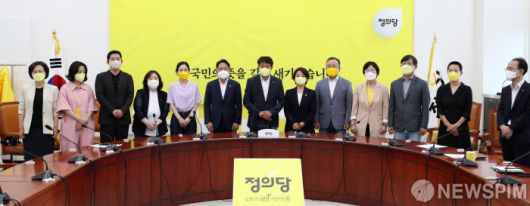 [서울=뉴스핌] 김민지 기자 = 여영국 정의당 대표를 비롯한 대표단이 2일 오전 국회에서 열린 중앙선거대책위원회 해단식에서 지방선거 패배의 책임을 지고 사퇴하겠다는 의사를 밝히고 있다. 2022.06.02 kimkim@newspim.com 저작권자(c) 글로벌리더의 지름길 종합뉴스통신사 뉴스핌(Newspim), 무단 전재-재배포 금지