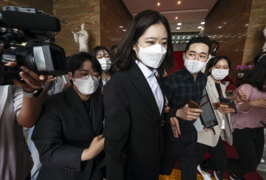박지현 더불어민주당 공동비상대책위원장이 2일 오전 서울 여의도 국회 당대표 회의실에서 총사퇴 의사를 밝히는 입장문을 발표한 뒤 국회를 나서고 있다.(사진=연합뉴스) |