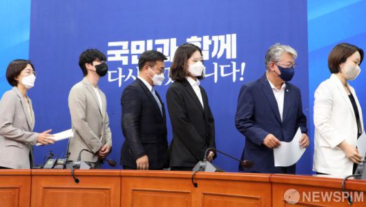 [서울=뉴스핌] 김민지 기자 = 윤호중, 박지현 더불어민주당 공동비상대책위원장이 2일 오전 국회에서 사퇴 의사를 밝힌 뒤 회의장을 나서고 있다. 이날 민주당 비대위는 6·1 지방선거 패배에 대한 책임을 지고 총사퇴 하겠다는 의사를 밝혔다. 2022.06.02 kimkim@newspim.com 저작권자(c) 글로벌리더의 지름길 종합뉴스통신사 뉴스핌(Newspim), 무단 전재-재배포 금지
