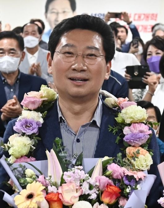 이날 이 당선인은 전체 투표수 48만2300표 가운데 26만4487표(55.37%)를 얻어 21만3162표(44.62%)를 얻은 더불어민주당 백군기 후보와 5만1325표 차이를 벌리며 당선됐다.
