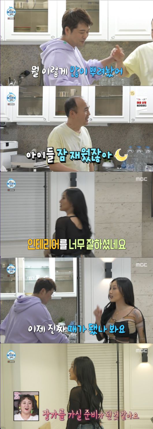 김광규는 “나는 스테이크에 집중할게. 네가 파스타를 맡아”라며 전현무에게 요리 업무를 분담했다. 전현무의 요리 지적에 김광규는 “안다”라며 전현무의 말을 끊었다. 김광규는 샐러드를 준비하다가 고기를 태우기도. 탄 고기를 본 전현무는 “동그랑땡인줄”이라고 말해 웃음을 자아냈다.