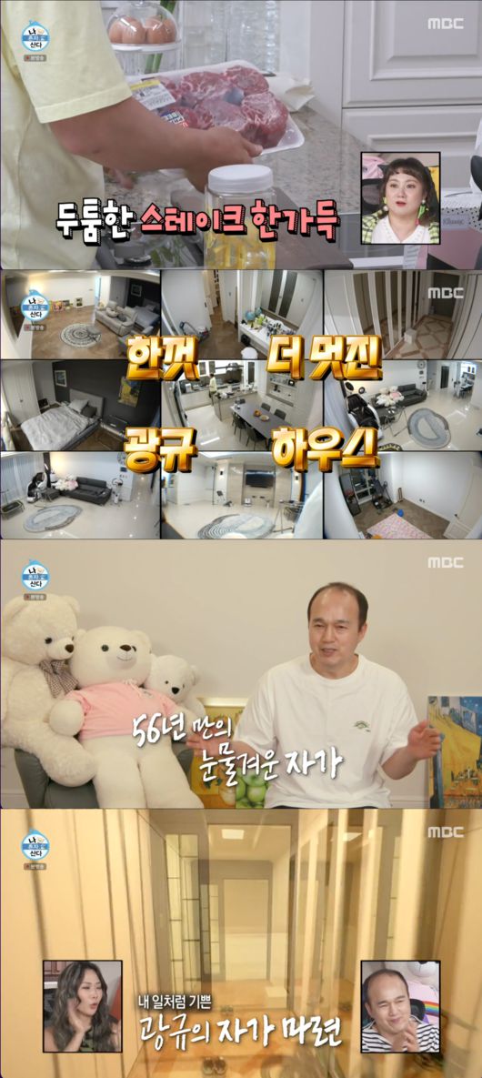 김광규는 요리를 하기 위해 주방에서 식재료를 꺼냈다. 두툼한 스테이크와 파스타면까지 가지고 나왔다. 김광규는 “오늘 우리집 집들이하는 날이다. 부산에서 어머니가 올라오셔서 가족끼리 집들이를 했다. 사회친구 집들이는 처음이다”라고 인터뷰를 통해 밝혔다.