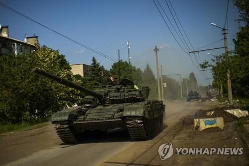 러군 총공세 속 도네츠크 거리 지나는 우크라군 탱크들 |