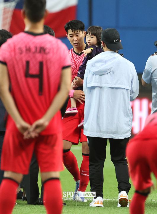 [스포티비뉴스=대전, 곽혜미 기자] '하나은행 초청 축구 국가대표팀 친선경기' 대한민국과 칠레의 평가전이 6일 오후 대전월드컵경기장에서 열렸다. 경기 종료 후 센추리 클럽 가입을 한 손흥민이 조카의 축하를 받고 있다. <저작권자 ⓒ SPOTV NEWS. 무단전재 및 재배포 금지>